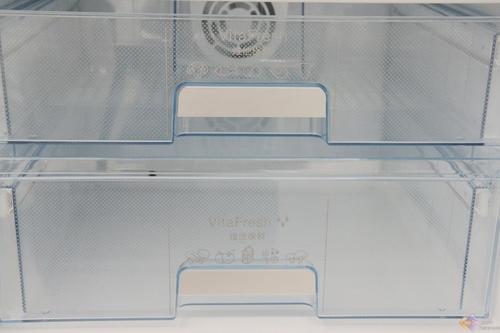这款博世KGF29846TI采用目前流行的三开门设计,LCD触摸屏。总容积达277L,其中0度维他保鲜室容积有60L。说到这,肯定会有很多朋友开始有疑问了,0度维他保鲜室?这是博世特有的设计,让食物在0℃不结冰的状态下,保鲜时间更长。