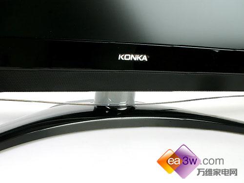 康佳 LC47DS30C液晶电视整体以黑色为主,设计比较简洁。底座采用了时下流行的回旋镖形状,并且可以做灵活的左右旋转,有效的增加了电视的观看角度。