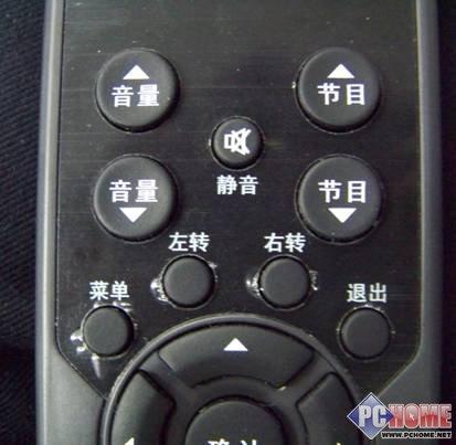 虽然遥控器样子普通,但它却附带了遥控电视机底座旋转的功能,可以看到上图的遥控器正中有左转和右转两个按钮,通过这两个按钮就可以实现屏幕左右旋转30°,为用户提供了更大的视角范围。