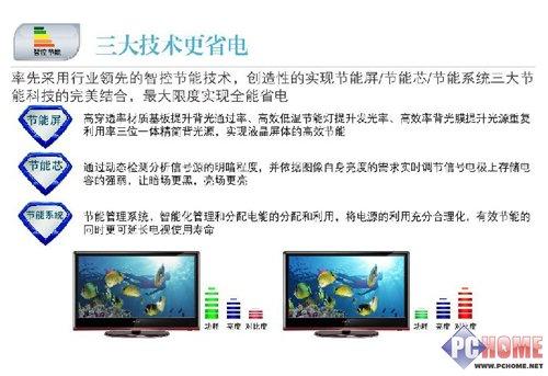 芯片方面:康佳的LC55FT68AC采用了节能芯片,通过动态检测分析信号源的明暗程度,并依据图像自身亮度的需求实时调节信号电极上存储电源的强弱,让暗场更黑,亮场更亮。该芯片技术不仅在信号输入的前端实现“节能检测”,而且还极大的提升了运动图像的动态对比度,增强了图像的饱和度、层次感及清晰度,是节能环保理念与运动高清技术的完美结合。