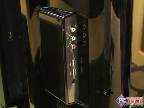 背部的右侧有着AV视频输入和对应的音频输入,并且L42E9FBD还提供了2个USB接口和一个耳机插孔。我们可以看到在下图的最左边隐隐约约的还藏有一个HDMI接口。