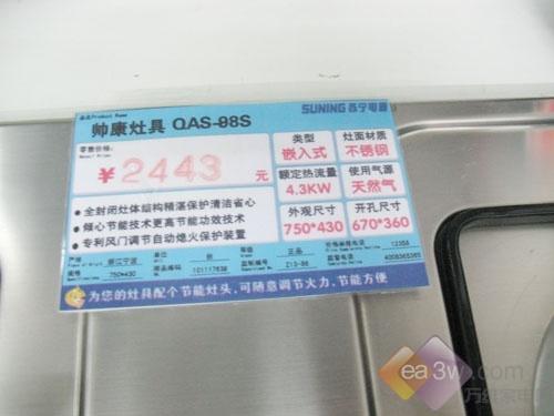 编辑点评:帅康QAS-98-S嵌入式燃气灶配有自动熄火保护,在烹饪过程中,若溢出汤汁或风吹等使灶具以外熄火时,热电偶将瞬时驱动保护装置,自动切断燃气气源,防止泄露,安全更有保障,目前这款燃气灶苏宁售价为2443元,但是网上售价只有1799元,有着不错的性价比。