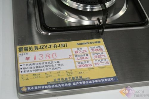 笔者今日在苏宁电器就发现了樱雪一款JZY/T/R.2-U07燃气灶。标价只有1380元,这个价格对于一款大牌燃气灶来说绝对罕见,有着很强的性价比,工薪家庭或是准夫妻不妨来关注一下。