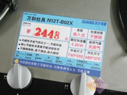 编辑点评:万和N-12T-B02X(嵌入式)燃气灶采用不锈钢材质面板,折边工艺处理,并且附带一体盛液盘,热效率高达63%以上,最主要的是这款产品售价为2448元,有着不错的性价比。