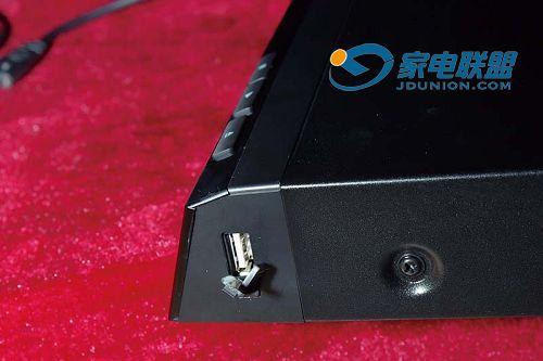 BDP0801采用了较为平实的包装和设计风格,机身外观具有典型的蓝光碟机特点:相比于当下的DVD碟机来说略显厚重的机身、黑蓝银混搭的机身色调、全密封和倾斜的前面板,都给人以发烧级的感受。机身前面板正中封闭的机舱盖上印有“BD”标识,托盘仓门也与前面板严丝合缝,避免灰尘进入。机身左侧是液晶显示屏及电源开关,右侧上部则是“停止”、“播放”和“出/入仓”这三个功能按键,显得很简洁。此外,值得一提的是,在机身右侧边华录还设计了一个USB接口,使用者可以通过它来连接外接存储设备,并读取其中的各类视频文件。