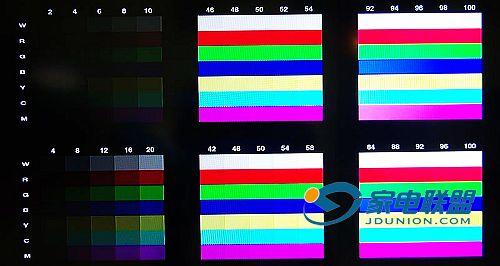 首先是清晰度测试,通过拍摄下来的测试样张我们很清楚看到1080处的线条也非常清晰,清晰度实测下来到1000线。接下来的灰度测试使用15级灰度测试图,BDP0801的表现同样出色,测试图上的每个等级都可以清楚区分。在对黑色物体和白色物体的表现上,两位模特身上的黑色衣服和白色衣服的轮廓和质感都清晰表现出来。接下来使用权威的柯达测试卡进行色彩测试,检测色彩表现是否准确,观察每个色彩格子颜色是否纯净。可以看到,BDP0801所播放的图像,近似色系的颜色之间细微的差别都可以准确表现,没有出现完全一样无法分辨的情况,在彩色毛线球上质感和细节都表现很到位,色彩过渡也恰到好处。对于色阶还原测试的两次曝光合成图,BDP0801同样也有较好的表现,暗部灰阶还原细致,细节丢失基本在可承受的范围。最后来看《Hi-Definition Reference Disc》中素材部分的图像表现,从拍摄得来的照片不难看出,BDP0801对于1080i的蓝光影碟的播放有着很好的视觉效果,丝毫看不到拉丝和锯齿,图像的灰阶还原十分平滑,即便在高亮和较暗的部分也能清晰分辨细节。
