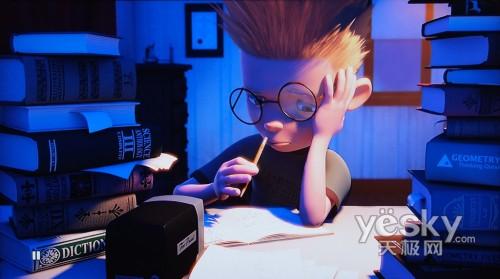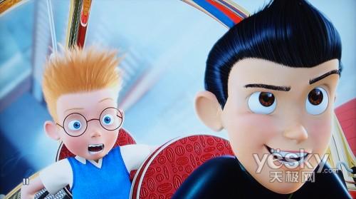 本次采用的演示蓝光片,是泰盛文化(详情)所提供的动画大片《神奇一家》。本作虽然基本定位于搞笑动画,但影片中的色彩表现在创维的电影模式下完美地体现出来。此款电视的优点在于它的六基色技术与120HZ+inverter Scan技术。使用了色彩增强功能后,明显觉得人物的脸部颜色和细节部分有了活力;使用了120HZ+inverter Scan技术后,解决了画面运动图像抖动及拖影问题。(屏摄样张因拍摄后的多次数码转换以及读者的显示设备性能不一,则仅供参考。)
