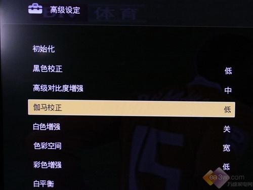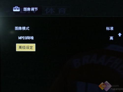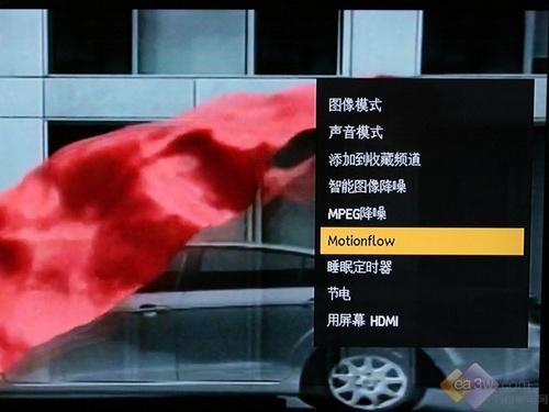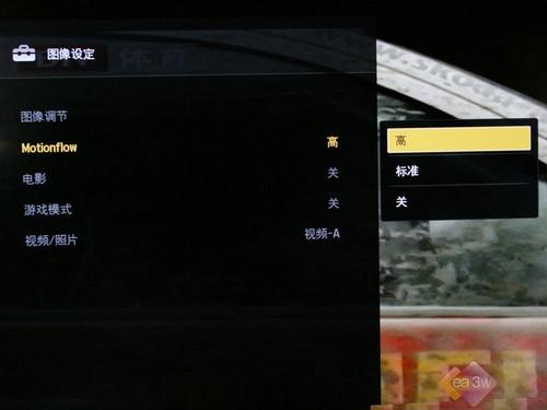 40ZX1具备的Montionflow 100Hz功能则是该机除了LED背光源之外的另一主要卖点。该项功能被设定成了高、标准二档。两档间的效果差别不大(直观上看)。