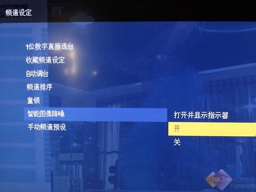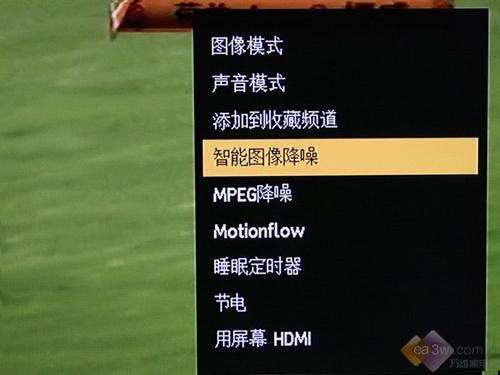 按下遥控器上的选项键,就会弹出一个菜单窗口。分为图像模式、声音模式、添加到收藏频道、智能图像降噪、MPEG降噪、Montionflow、睡眠定时器、节电、HDMI接口的九大选项。子菜单和母菜单分为2—3级进入模式。用户可以分别根据自己的喜好进行相应调节。