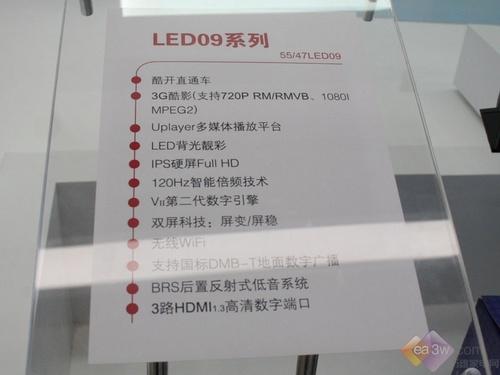 创维LED09系列液晶电视新品有55、47英寸大小,型号分别为55LED09(参数 图片 论坛)、47LED09(参数 图片 论坛)。