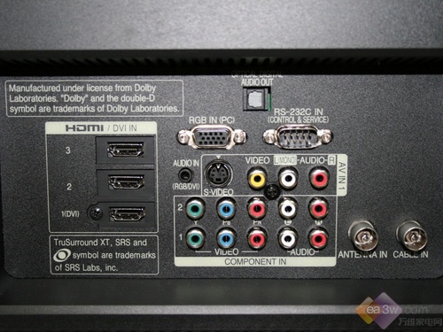 接口配备上,三星LA46B550K1F配有4个HDMI、1个USB、1个PC端口,轻松连接各种数字设备。USB可读取图片和MP3文件。影音效果上,B550使用了SRS TruSurround HD高清专业环绕音效,影音效果得到了保证。
