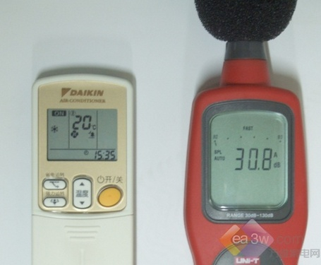 关于大金 FTXS35HV2C空调的噪音测试,我们采用专业的噪音测试仪。在空调正常启动后,分别在空调不同风速运行时,对空调进行噪音的测试。因噪音测试对测试环境的要求比较高,为此我们会分别对出风口处,以及距离空调2.5米处时,对空调噪音结果进行记录。