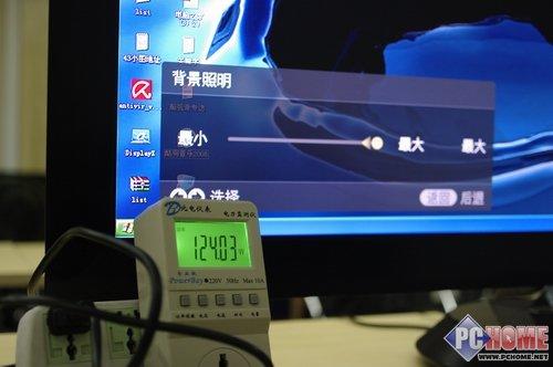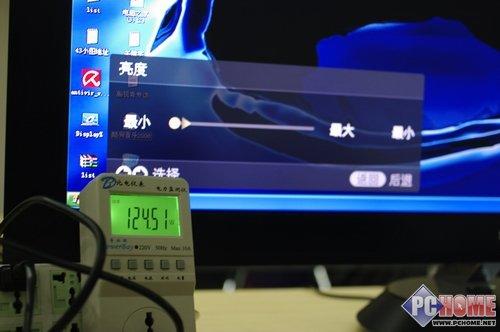 亮度为最小时功耗为124.51W(OSD菜单灯未关闭)