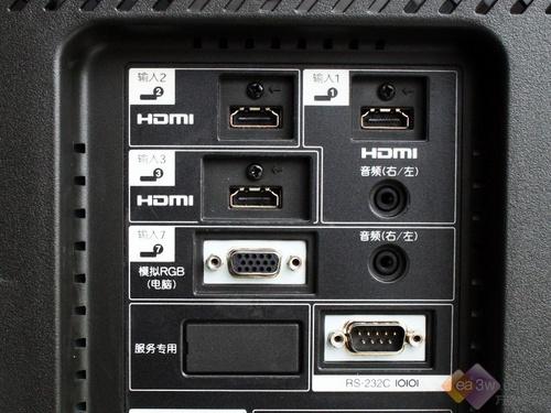 接口方面,夏普32GE5A除了提供常用的双分量接口,提供VGA输入、复合端子AV以及S端子等接口外,还在侧面和背面共提供了3路HDMI接口,可以更好的满足蓝光和PS3游戏机等高清设备播放的要求。