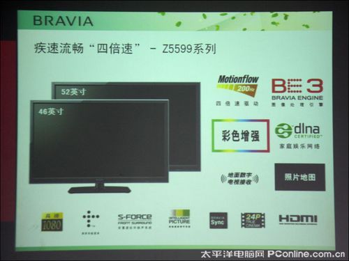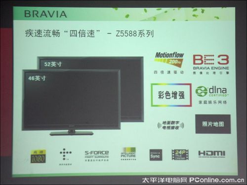 高明先生随后介绍了拥有疾速流畅“四倍速”技术的Z5588系列液晶电视,Z5588是索尼首款拥有BRAVIA ENGINE 3图像处理引擎的200Hz四倍速驱动液晶电视,其它性能亮点包括彩色增强技术、地面数字电视接收、WCG-CCFL亮艳色彩背光源、10bit液晶面板等。