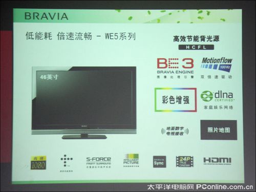 WE5系列是索尼此次发布会的重点产品,拥有全新的HCFL(热阴极)背光技术,比同尺寸普通CCFL(冷阴极)背光技术液晶电视节能近40%。另外,WE5系列拥有BE3图像处理引擎、100Hz双倍速驱动、彩色增强、地面数字电视接收等功能。