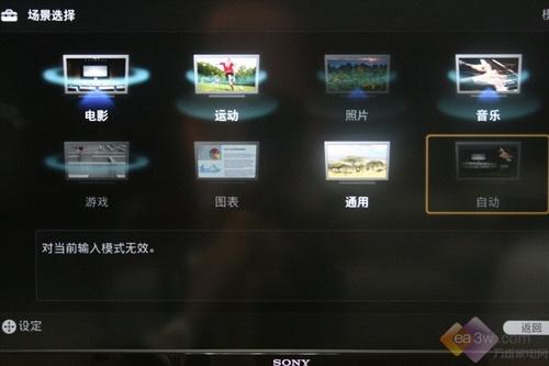 BRAVIA液晶电视提供了8种场景模式让你选择,实现不同场景较为优化的图像和声音效果:电影模式/运动模式/照片模式/音乐模式/游戏模式/图表模式/通用模式/自动模式。