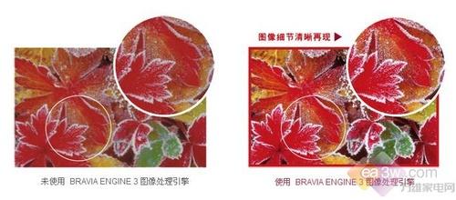 BRAVIA Engine 3 是索尼长年致力于高画质影像而诞生的全数字高清影像处理引擎。可以处理标清和高清的信号源(包括1080逐行扫描信号格式)的图像,展现出更高更好的图像效果。
