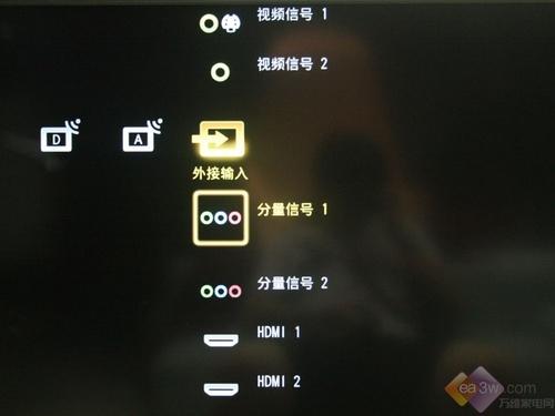Z5599配备了分量、视频、PC输出等常用接口。在机身后置了两个HDMI接口,另外两个采用侧置方式。