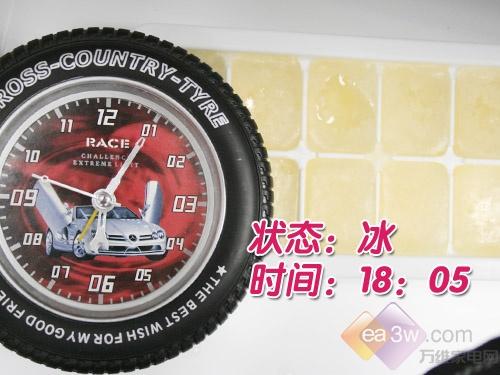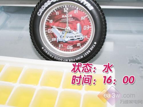 测试结果:由水冻结成冰的时间为125分钟,效果不错。