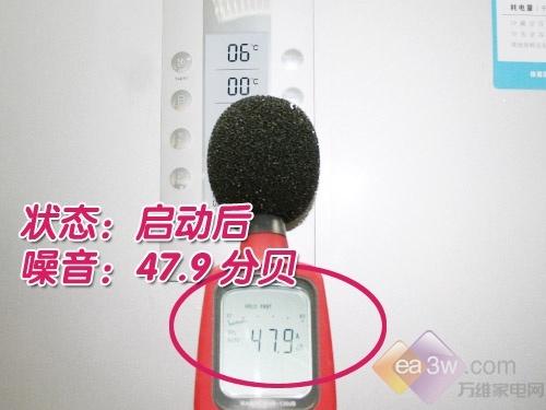 测试结果:经过专业声级计的测量,冰箱在启动后的噪音指数为47.9分贝,低于国家规定的人体舒适睡眠噪音值(50分贝),静音效果良好。