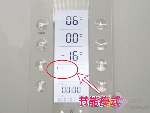 进入节能模式后,冷藏室显示6℃、保鲜室显示0℃、冷冻室显示-16℃,制冷系统将自动在这样的温度设置下运行。