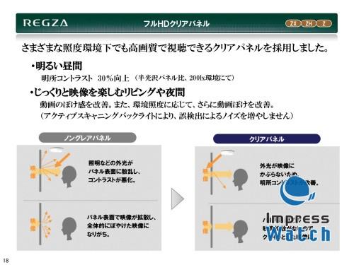 目前很多液晶电视仍然是惯例性得使用防眩光面板。而此次REGZA选择清洁面板也主要是因为现在对于液晶电视显示效果高质量的要求。等离子电视由于显示是通过玻璃实现的,因此最初也是清洁面板。顺便介绍一下的是最近的笔记本电脑产品也在强调高画质,因此也都开始使用清洁面板。