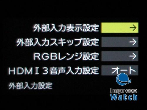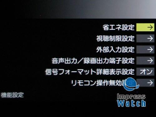 从打开电源到出现电视画面所需时间约6秒。比较平均。输入转换是按遥控最上层横宽的压板式按键[输入转换]依然实现。按钮是左右设置,但是打开的菜单却是上下排列,虽然直观但不易懂。希望把[输入转换]按键做成输入转换菜单启动按键。输入转换时间方面是HDMI→HDMI约3.5秒,HDMI→D4约4.0秒。频道转换约1.5秒。纵横尺寸比的转换几乎是瞬间完成,基本上只需要零秒。这个倒是非常快。