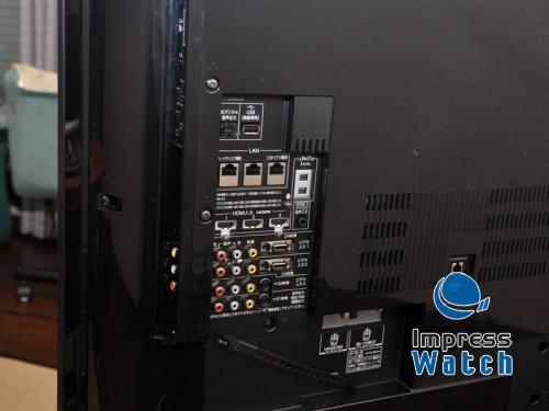 接口主要设置在了背面和正面以及右侧。其中侧面面板配备有B-CAS卡槽,SD卡槽,USB接口(键盘和数码相机等连接专用),主电源开关,频道和输入转换等的基本操作按键,以及各种AV连接接口。