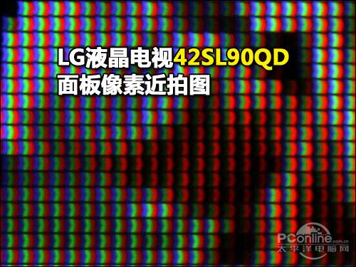 LG 42SL90QD屏幕像素近拍图,呈“>>>”排列,像素点较粗