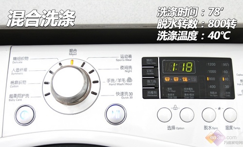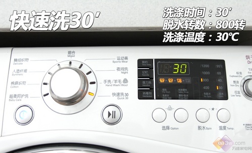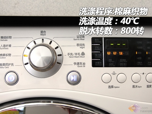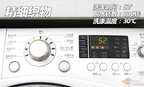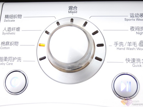 在操作面板的设计上,由于其带有烘干功能,所以特别设有两个程序选择钮,人性化的将洗涤和烘干程序选择区分开来,更加方便使用。