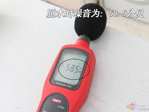 在门窗密闭的环境下,根据国家洗衣机测量标准,测量洗衣机脱水转数为800转时脱水最后三分钟时的噪音指数。根据国标,在测量时将仪器离开洗衣机大约一米远,正对洗衣机进行测试。
