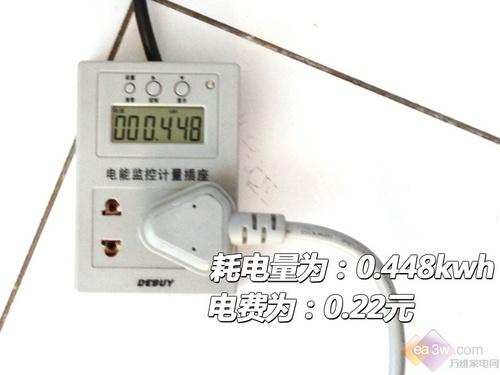 耗电量方面,0.448kwh的耗电量处于一般水平,折算成电费为0.22元。