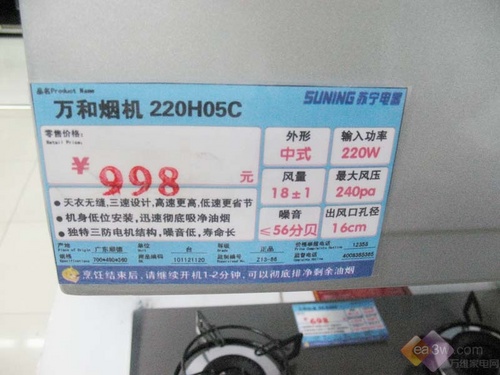 编辑点评:万和H05C油烟机为中式油烟机,虽然没有欧式油烟机造型优美,但是功能强大,相对来说更加实用,而998元的促销价更是一大卖点。