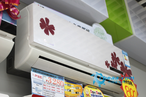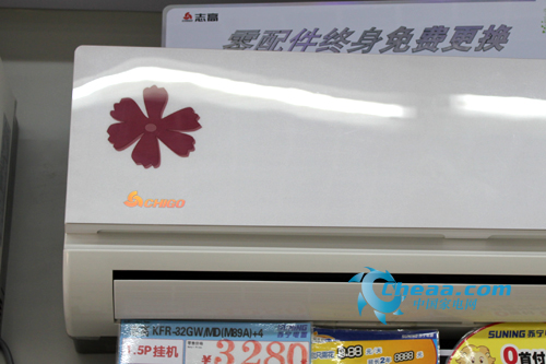 这款空调粉白色面板,印有“蝶恋”系列粉色优美花纹,采用的是高档PC面板,是时下非常流行的一款平板空调。
