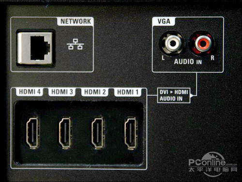 56PFL9954H主接口区下部接口配置了4组HDMI高清影音接口,1组LAN接口,以及VGA音频输入接口。4组HDMI接口竖直排列,显得非常壮观。