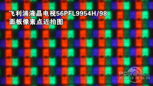 飞利浦56PFL9954H屏幕分辨率为2560×1080,从笔者拍摄到的面板像素点图来看,像素点形状是红绿蓝三色相间的小方块,因此肯定不是三星产S-PVA、LGD产S-IPS硬屏,最有可能的产地是日本夏普或者台湾奇美,具体产地则需要根据工程菜单确定。