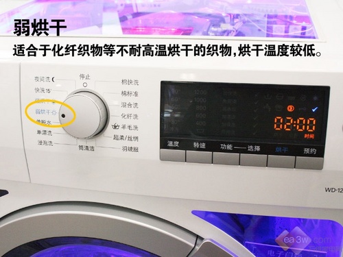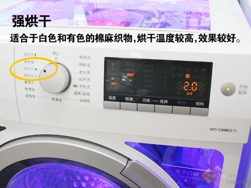 这款西门子WD12H460TI配备了强/弱两种烘干程序,在使用时可根据不同的衣物质地来选择合适的烘干程序。