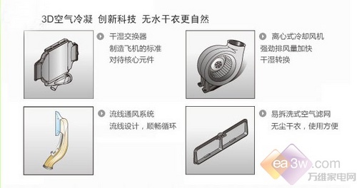 在技术创新方面,首次改变了洗干一体机中冷凝器的冷却方式,节约了大量的水资源,符合现在节能减排的大趋势。