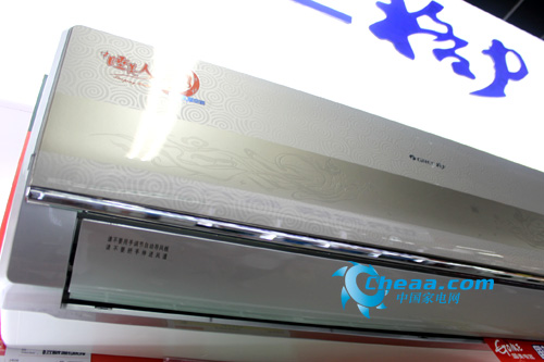 这款空调采用极具金属质感的铜色为机身主色调,配以中国传统的“祥云”图案为暗纹,在机身面板的中央,对称式的画有“嫦娥奔月”的中国传统特色的工笔画图案,整款空调古朴典雅,图案栩栩如生。