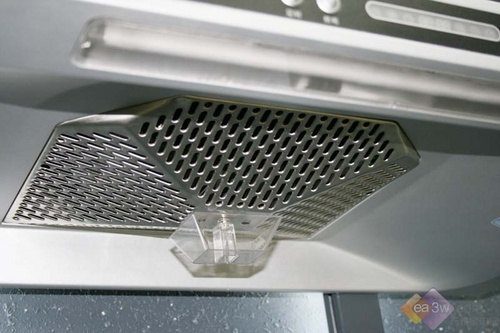 值得一提的是这款油烟机摒弃了向下凸出的传统造型,改为独特的嵌入式进风口,与弧形玻璃保持水平一致,增加了集烟腔的深度,笼烟能力大大提高,集烟腔的完美造型,让油烟在升腾过程中的阻力减小,有效防止了油烟的外逸。