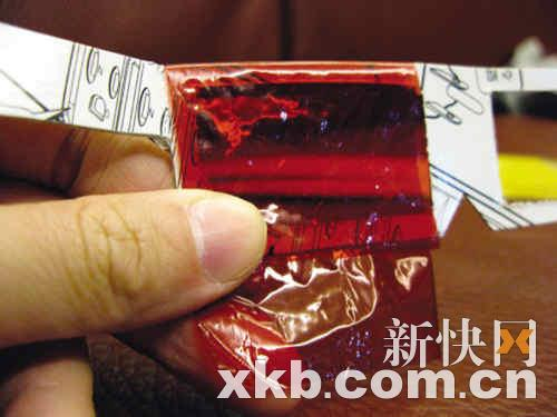 制作材料:红色塑料色纸、蓝色塑料色纸、尺、厚纸板、签字笔、剪刀、双面胶。塑料色纸在一般文具店都可以找到,懒一点的话可以找红色和蓝色的糖果纸代替。