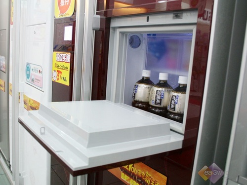 吧台设计与显示屏并排设计与冰箱的右侧面板,从能上说,吧台的使用可以使使用者轻松的拿去平时常常饮用的饮料,同时不用出现因打开整个冰箱而出现冷量流失的现象,在生活上说呢,朋友、爱人之间在吧台上小饮几杯红酒的生活不也正是我们所追求的生活情调吗?