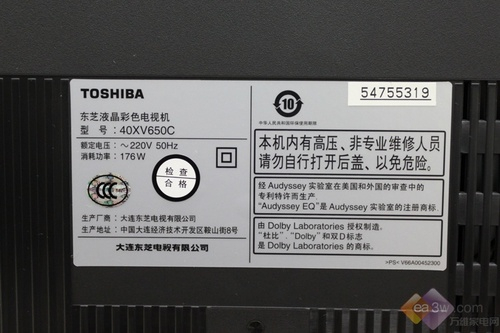 东芝40XV650C 生产厂:大连东芝电视有限公司