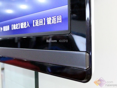 创维42LED10液晶电视使用了侧光式白光LED背光,再加上最新设计的薄型化专用电源,使其机身非常纤薄。电视整机厚度仅为普通液晶电视的三分之一,其中32寸、37寸LED电视机身最薄处仅为22mm。另外,从侧面看LED10系列,设计师巧妙地将边缘极至收紧,并结合圆弧曲线过渡到机身最厚部分,从而实现了接近无形的视觉效果。
