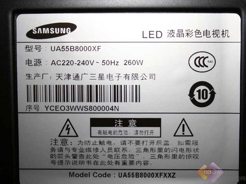 三星 UA46B8000XF 生产厂:天津通广三星电子有限公司
