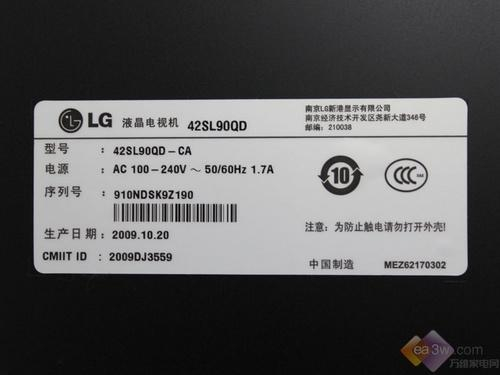 LG 42SL90QD 生产厂:南京LG新港显示有限公司