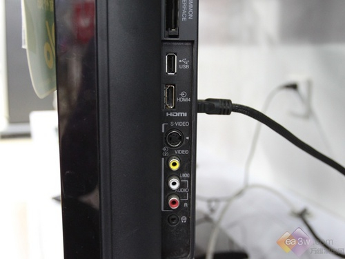 东芝40XV650液晶电视除了传统的电视接口之外,为数字电视天线和CA卡预留了插槽,连接高清电视非常方便,机器本身配置了4组HDMI,高清应用空间较大,值得一提的是在侧面预留了USB接口。不过遗憾的是,只能读取图片和音乐,不支持视频播放。