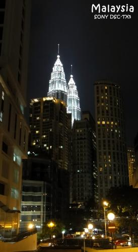 由于天气情况不佳,因此白天的双子星塔看上去很一般,但一到晚上,灯光全开下双子星塔还是非常的“显眼”。虽然远看双子星塔并不觉得其高,但当走到大楼底下时,才觉得它是如此的雄伟。