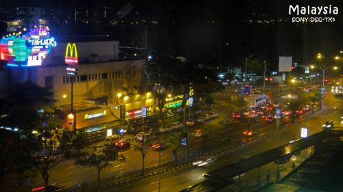 两边的排档主要为华人所开,所以即便你不会说当地话,也能很好的点餐。在这里吃过具有民族特色的晚饭后,按原定计划我们开始游览阿罗街的夜景。此时天空夜景开始下起雨来,但对手持TX5的我们来说,这丝毫不是问题。